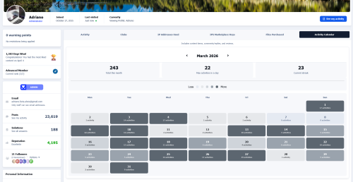 Show member activity in a simple, visual way with a monthly calendar on the profile. Quickly see when a user was active, their busiest days, and their current streak. Activity includes content items, comments/replies, and reviews across the community. Admins can choose which groups can view the tab, and it won’t appear for banned members. Setting: Groups that can view the profile tab$18