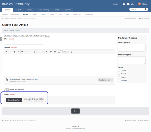 This plugin will make the image record required when submitting a record in Pages.
