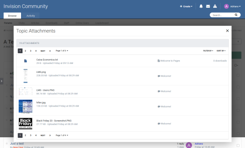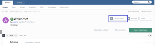 This plugin will add a link to a popup in forum view (and in topic view, depending on your settings) to show the topic attachments faster and together in a single area. Post view permission is checked so only attachments that their posts are visible to the user are shown.