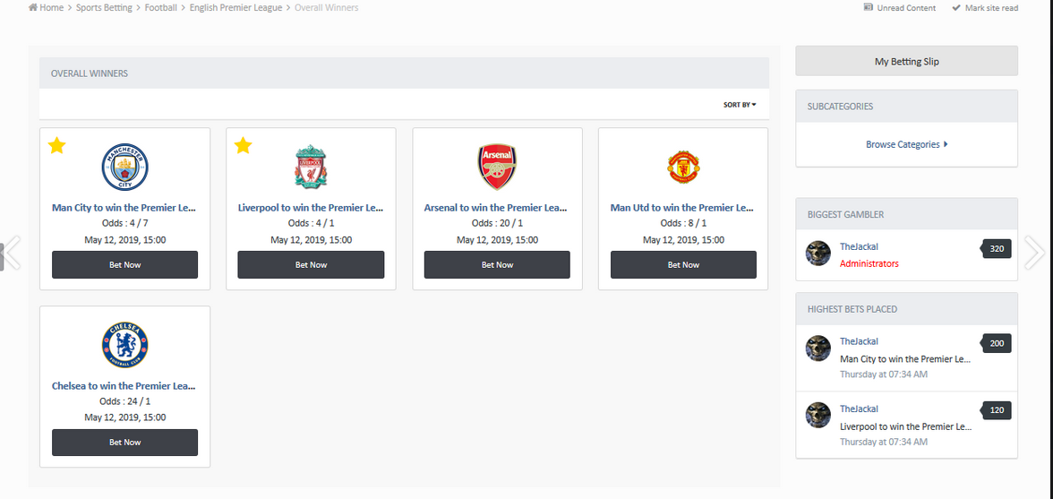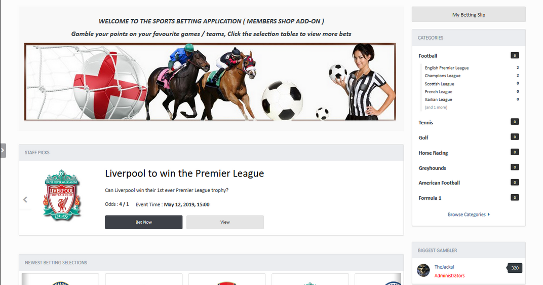 - Choose to display a category listing or the bet selection tables via the settings in the ACP as the landing page