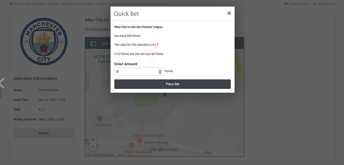 - Either use a font-awesome 5 icon or upload a image to show on the bet slip