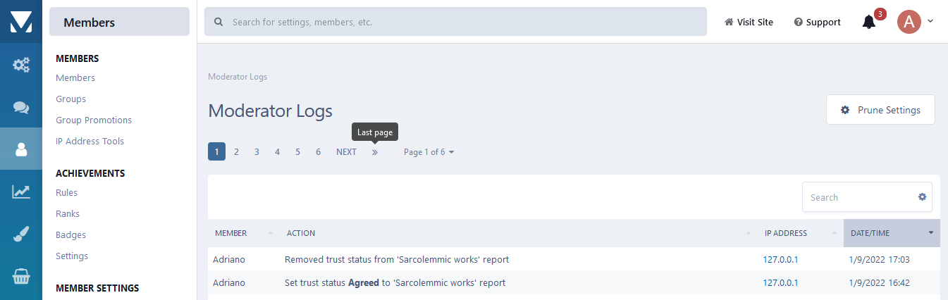 You can also view a list of all members with their ratings on a specific module on Admin CP.