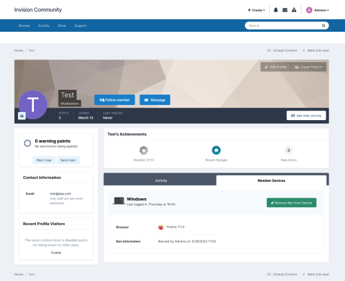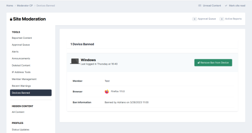 - A new tab in Moderator CP, where will be displayed banned devices from all members