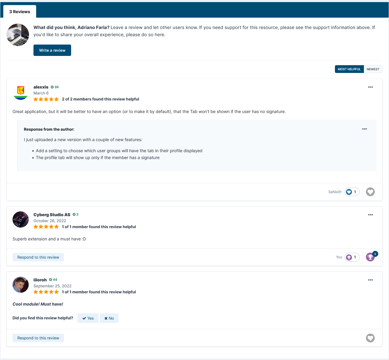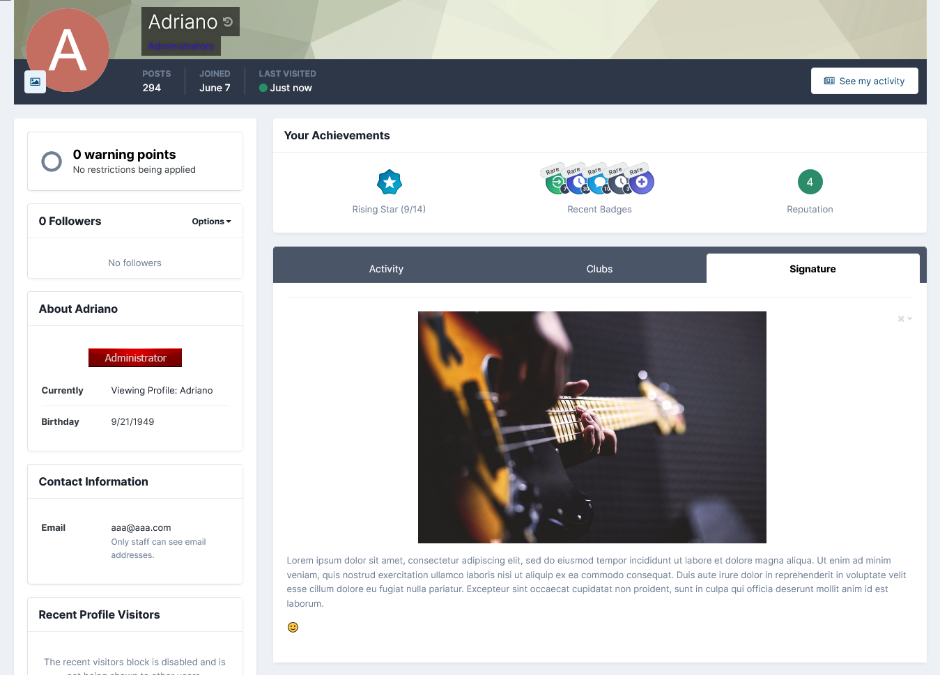 This resource will display the member's signature on a new profile tab.