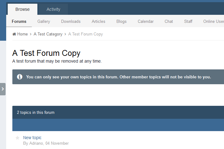 This simple plugin will make things easier for users by showing a message when they can't see other members' topics/questions in forums (forum setting Users can see topics posted by other users? OR Users can see questions asked by other users? must be disabled).