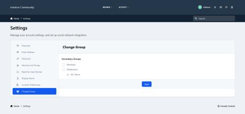 The registration group/change of group on Account Settings will not be saved IF any attempt to exploit (try to change the Group ID) is detected. An error message will be displayed instead.