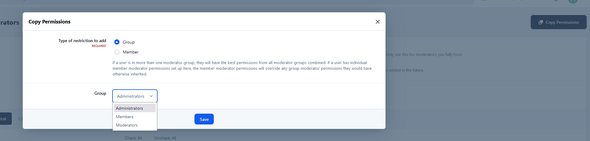 Copy Moderators Permissions 2.0.0