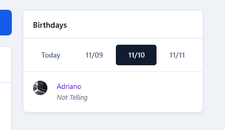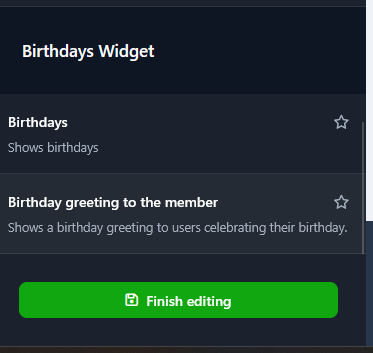 The widget will be visible only if the profile setting Enable birthdays? is set to: