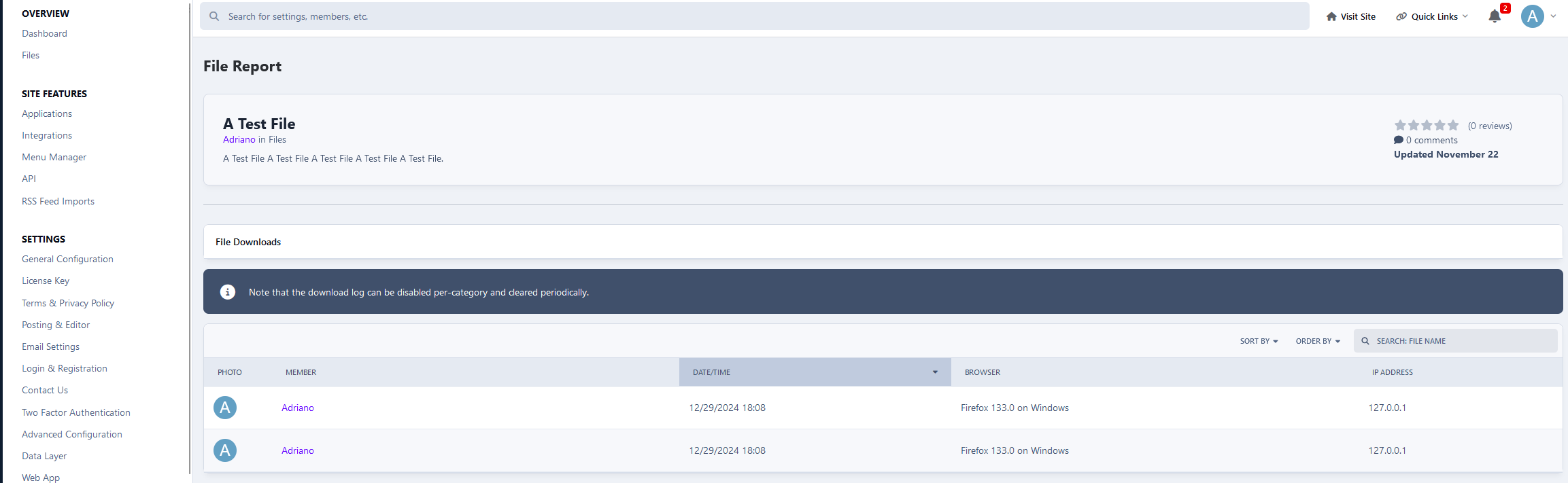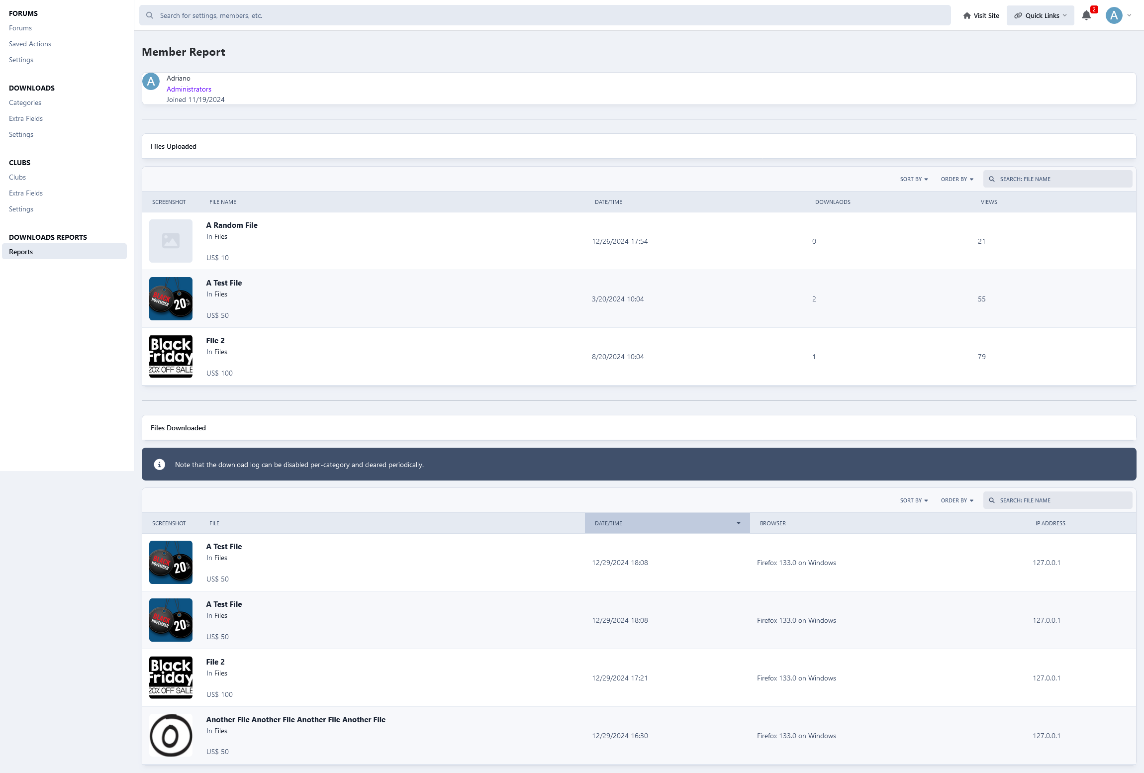 This application will restore a feature from IP. Download 2.5.X (IP.Board 3.4) will display files and member reports.