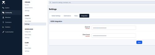 Enter the Client ID and Client Secret in the app settings on Admin CP
