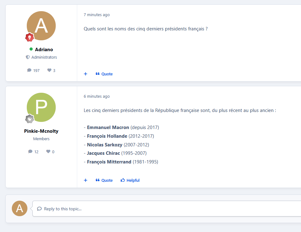 This application utilizes Perplexity AI or Google Gemini AI to generate replies to new topics automatically. Replies are processed via a background task (running every 5 minutes) to prevent delays during topic creation. All automated replies are usually written in the same language as the original post, helping to increase engagement and responsiveness across the community.