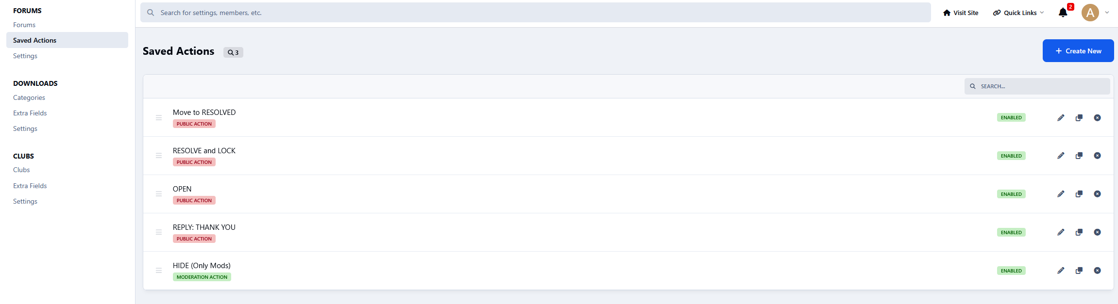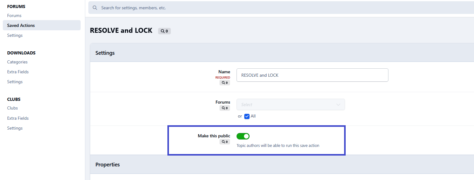 This application allows topic authors to run specific topic-saved actions that the administrator permits. Public saved actions will only be visible to the topic author if they do not have moderator permissions to run standard saved actions.