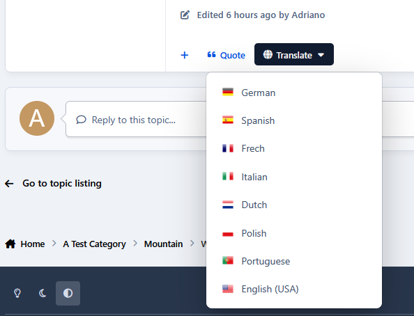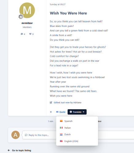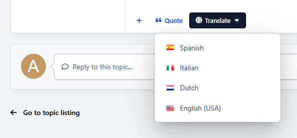 Translate Posts lets your community translate forum posts instantly with a single click. A simple language menu is added directly to posts, making multilingual discussions easy and seamless. The app supports multiple languages, including English, Spanish, Portuguese, French, German, Italian, Dutch, Swedish, Norwegian, Danish, Finnish, Polish, Czech, Hungarian, Romanian, and Greek. Actually, it can use any language available on Google Translate. For better performance, translations are cached, so once a post is translated, it loads instantly on future views. The cache is automatically refreshed when the original content is edited.