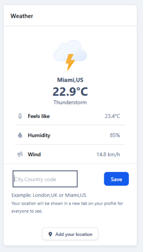 Members can also personalize the experience by adding their own location directly in the widget. When they do, their chosen city will appear in a dedicated Weather tab on their profile, so other users can see the current weather in their area.