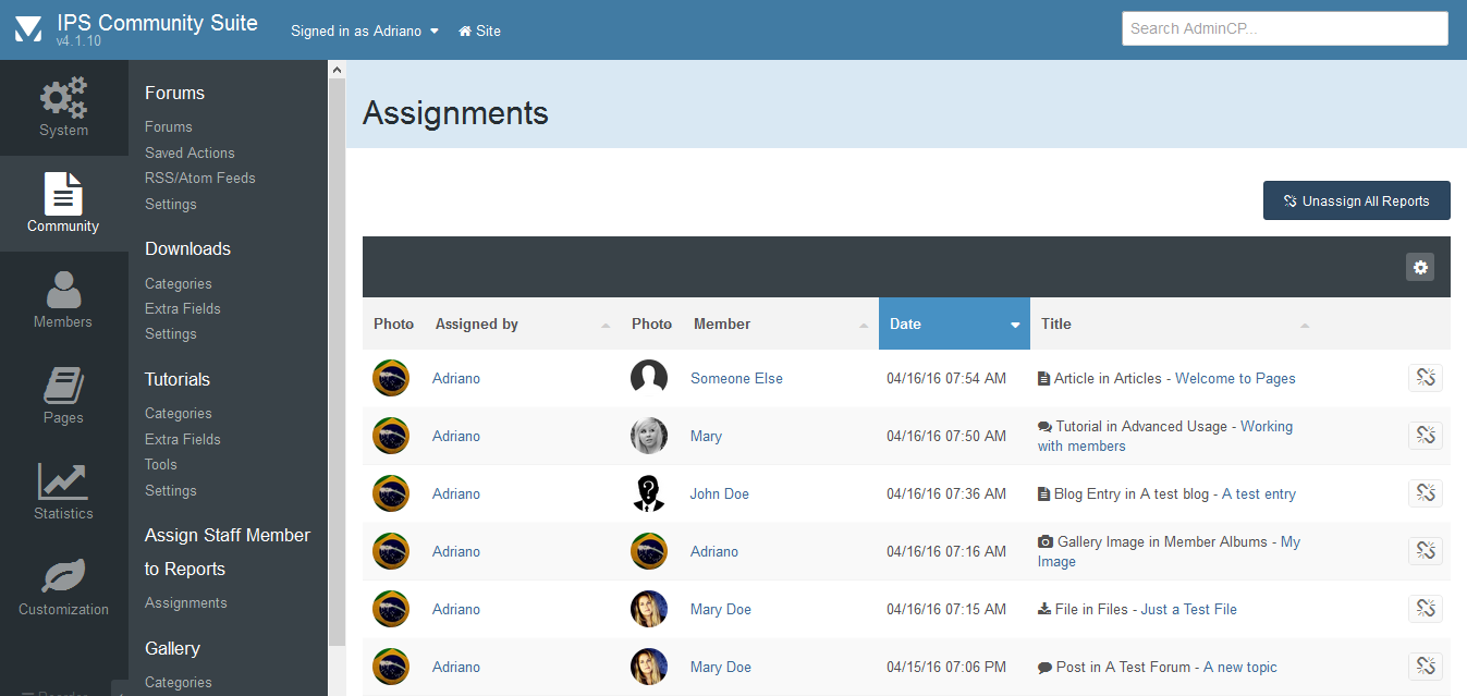 For a better organization of the Report Center and a better distribution of work between moderators, this resource allows admins to assign moderators to specific reports. Only Admins can assign other admins and moderators to a report.